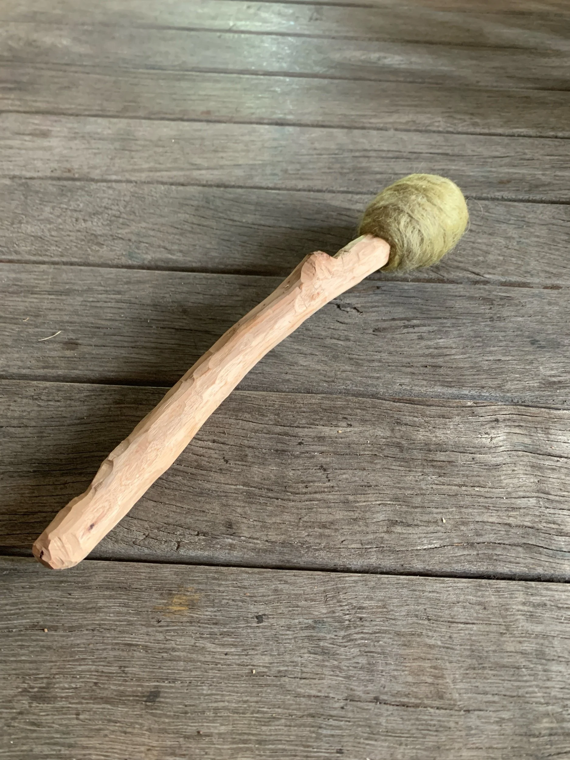 Whether through a finished drum, a beater, or the process of making one together, the work here is guided by relationship — with materials, with sound, and with time.